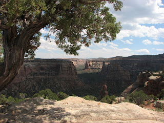 Our first hike was the six-mile "Monument Trail" across the canyon floor in Colorado National Monument. Here is an overview shot and a shot from the trail of "Independence Monument":